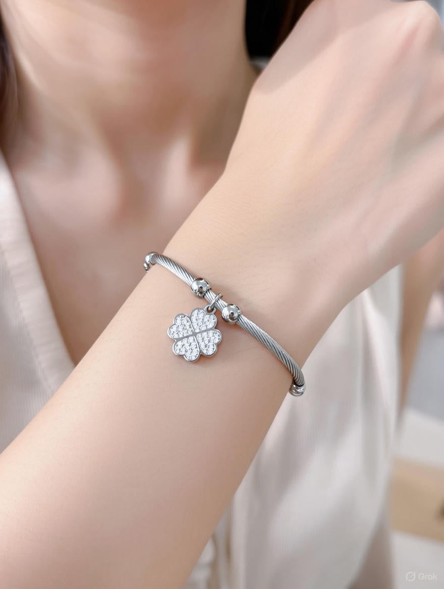 A Escrava Trevo Brilhante é uma peça única e elegante, pois no seu trevo é todo cravado com lindas zircônias.